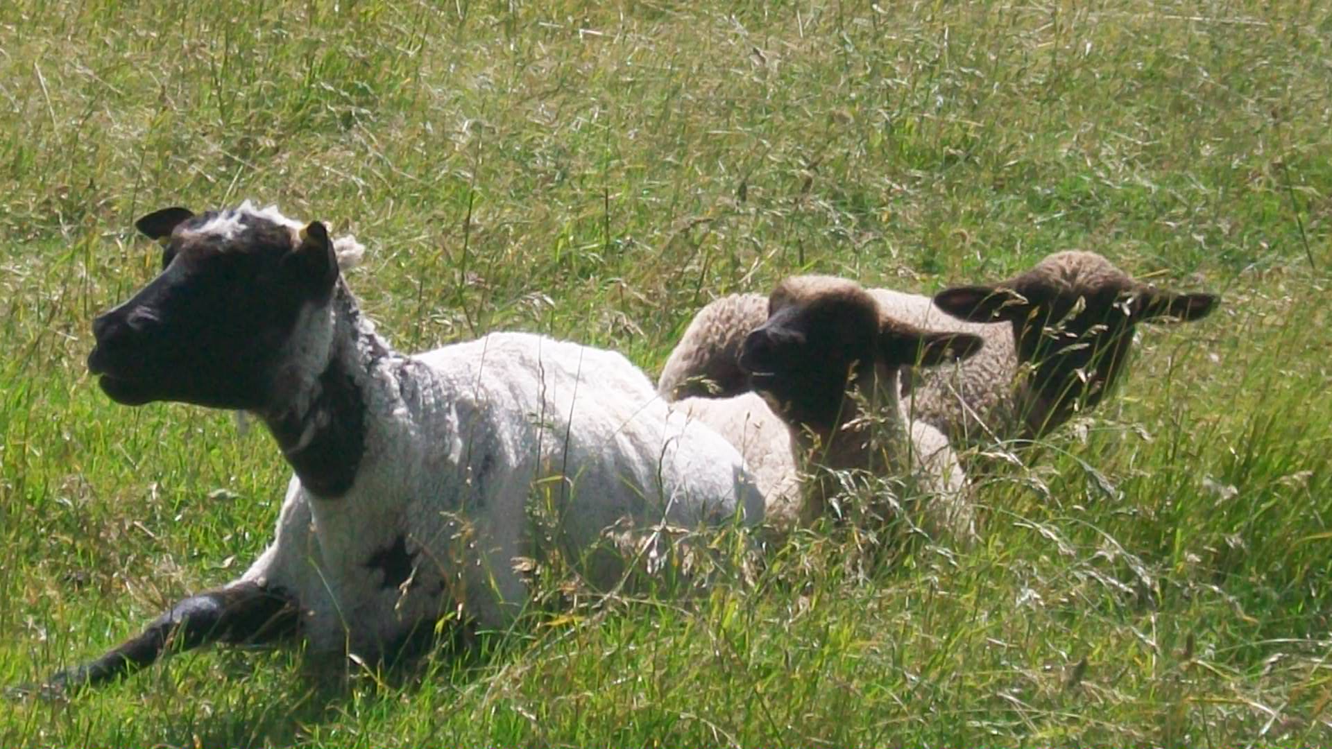 Baby lambs with their mothers enjoying the sun