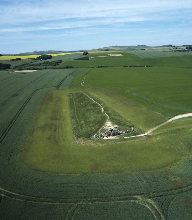 High view of West Kennett Long Barrow