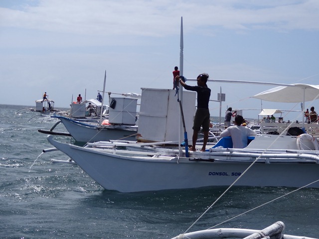 On that first day it didn’t happen very often. We were out at sea for three hours, just puttering up and down the coast, watching another 25 boats doing the same thing. We had a potential sighting twice, but the boats scared the shark away. After a while, my eyelids started to get very heavy, and along with the 4.45am start, and the gentle putt-putt-putt of the engine, my eyes closed and I drifted into a nap. So not much happened, but it was relaxing, good to be away from Manila and out at sea.