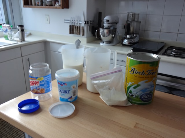 We purchased yoghurt starter as part of our initial experiments to give us a standard to test our experiments. It turns out that you don’t really need it unless you can’t get plain fresh yoghurt easily.