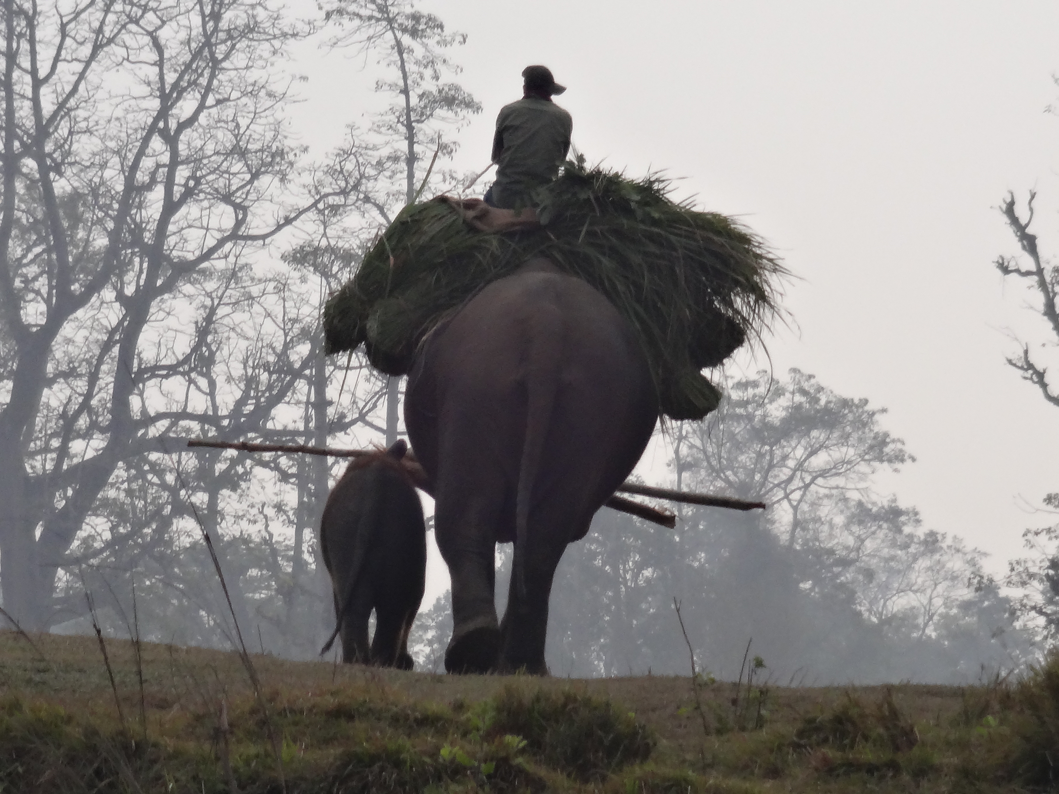 It was fun to see, but it soon became tiring stretching over everyone else’s head to get a view and the match looked like it was coming to a close. We headed back to the hotel to book more elephant activities for the following day, and early the next morning, while the mist was still pretty thick, we headed off on an elephant ride into Chitwan Park.