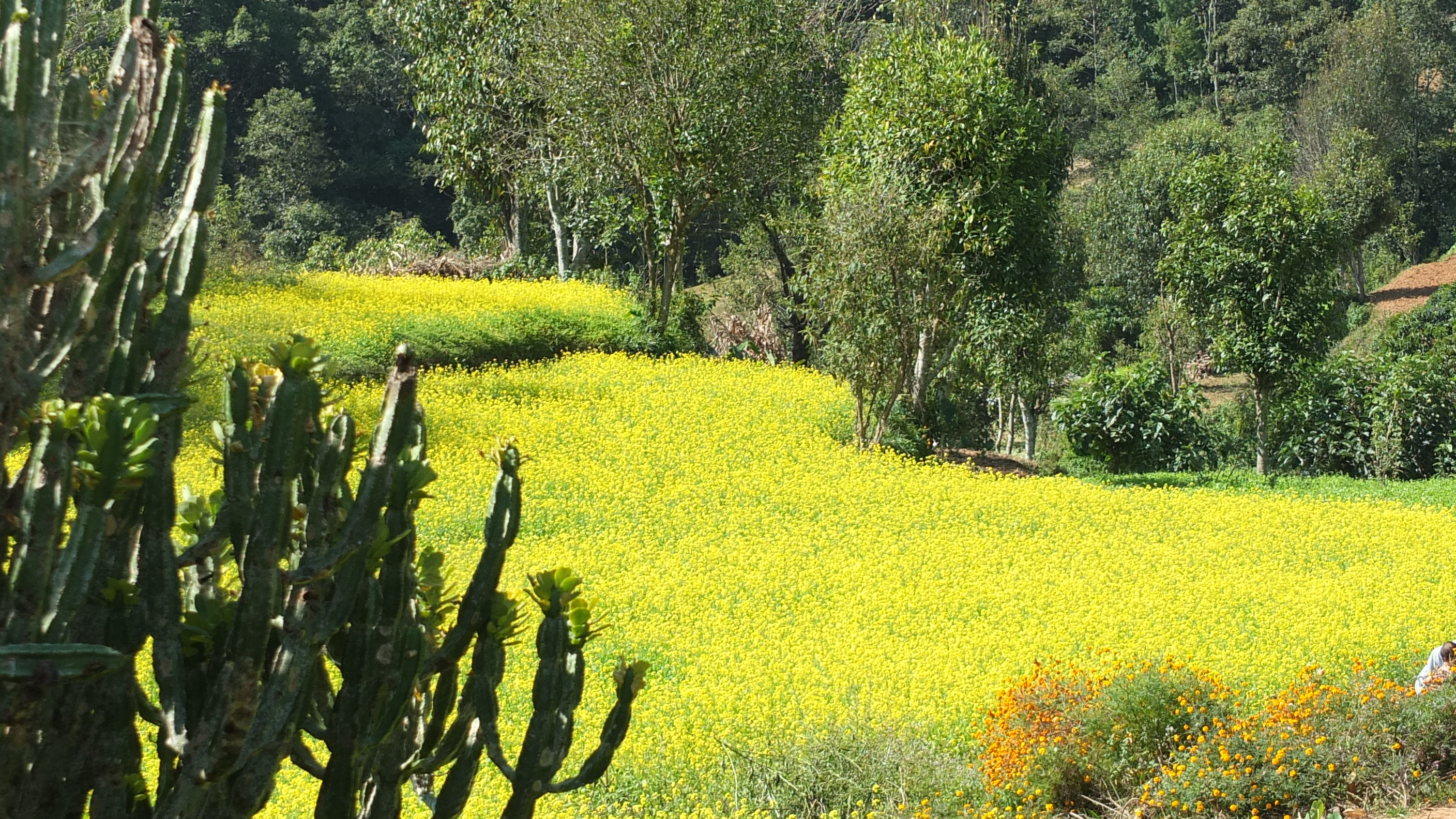 Winter in Nepal is a time when you can see bright yellow mustard fields. The eye-catching, vivid colour reminds me so much of the bright colours you see everywhere here. This particular mustard field had a cactus with yellow flowers and spooky, dramatic spider webs. Fantastic!