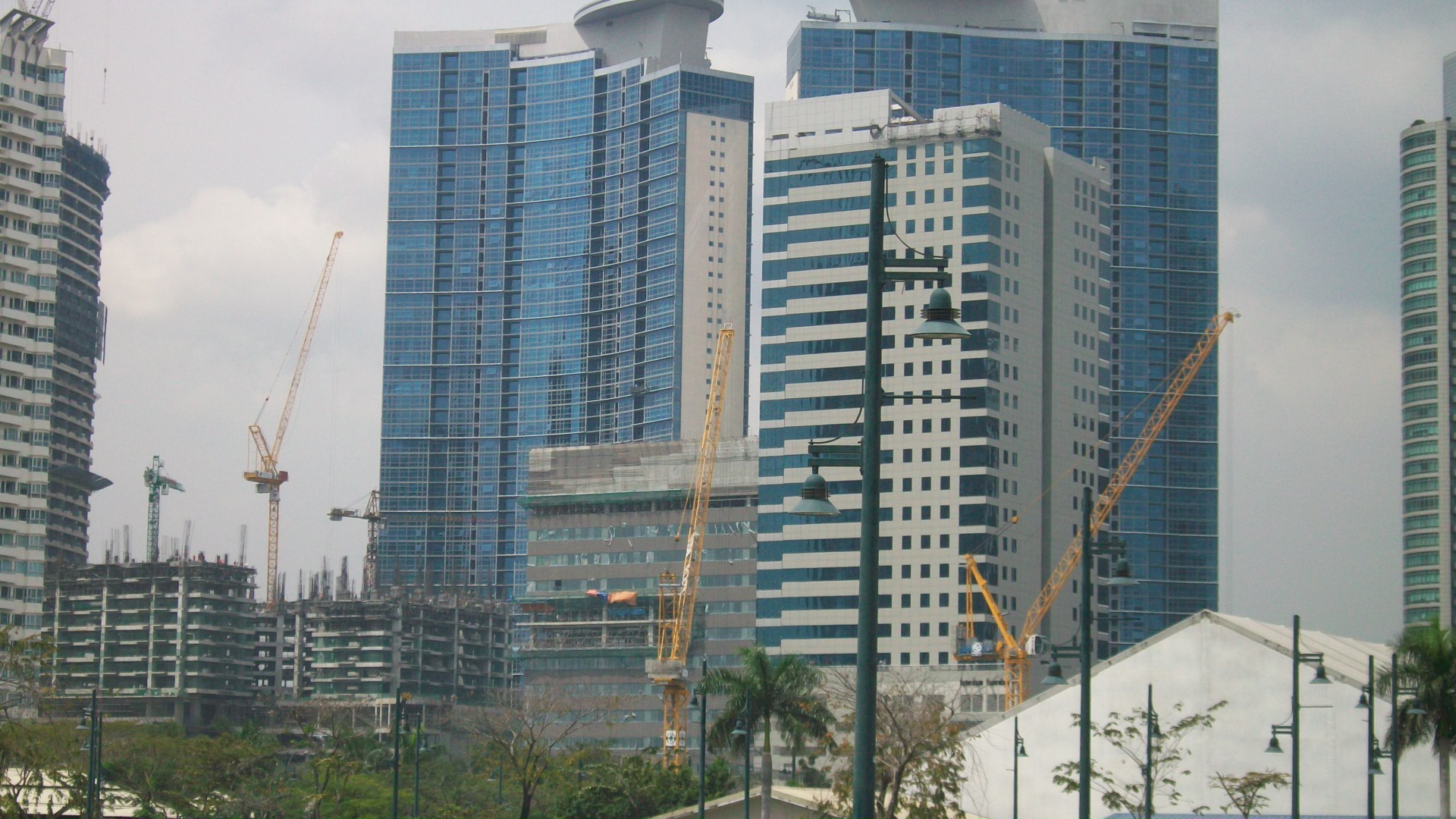 Yes, that’s SM Aura in the background. Although the shopping center and cinemas are open, you can see the continuing construction on the tower as the offices are not completed yet. Here’s a close up of Aura, in striking contrast to the older, poorer district immediately behind it: