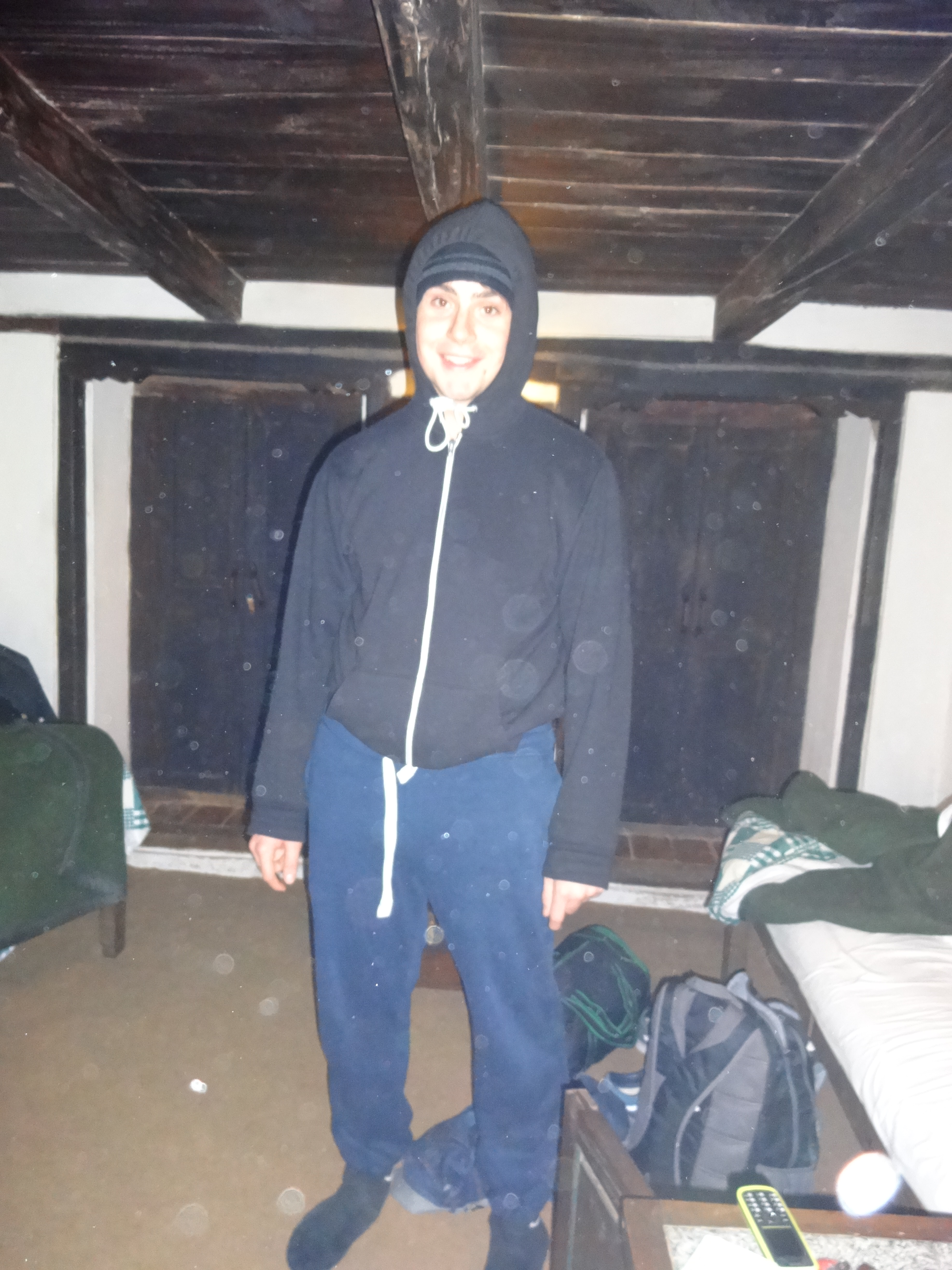 Fortunately the electricity was back on for a while as we regrouped for bed. Pajamas were out of the question. We slept in sweat pants, hoodies and socks. We layed on blankets and climbed in our beds with the last of the water bottle’s heat, hoods tightened around our heads.