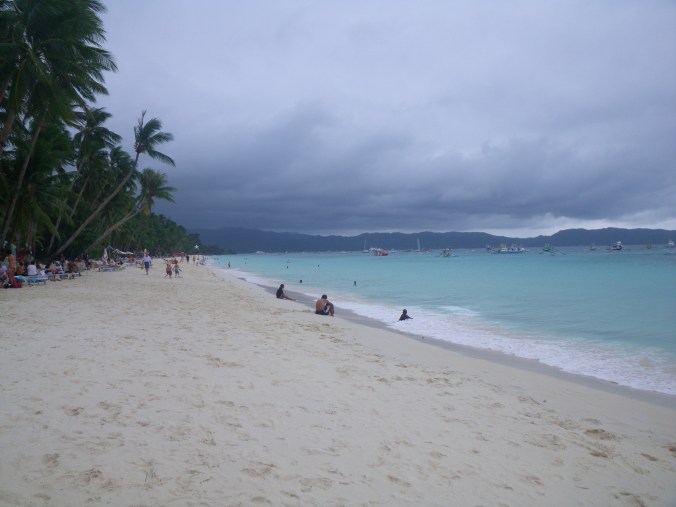We were warned it would be crowded at Christmas and it was – despite the weather. The main restaurant and tourist section (Station 2) was heaving by 7pm and we had to shuffle single file past the shops and bars past slow-walking Japanese women wearing ridiculously high, spike-heeled evening shoes in the sand, every tenacious tourist peddlar known to man all selling exactly the same crap goods, large families with small children, loud crowds of young backpackers on an Asia odyssey, trading locals, Manila Pinoys and everyone else (and their mother)… It was quite a scene. We ate early, left early, and returned to our quiet cottage at the far end of the beach. We were happy to enjoy the chaos for a short time and happy to get away.